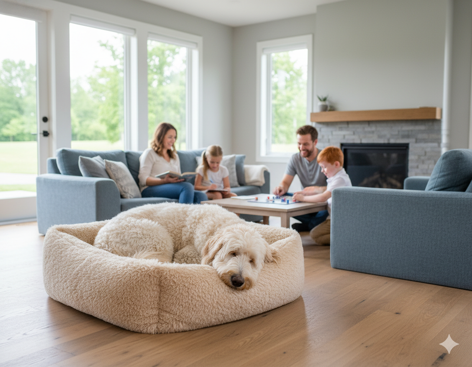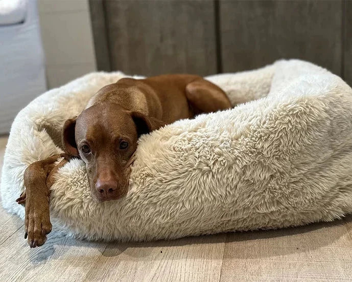 Browse real-life snaps of dogs drifting off in The Franklin bed—from playful pups to wise seniors. Each photo shows how comfort and style come together for perfect nap time.